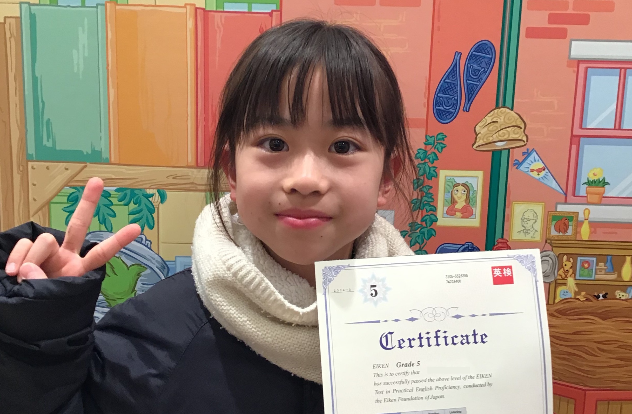 いつも楽しいレッスンありがとうございます。楽しく学びながら、英検も合格できて、うれしいです!次は、4級をチャレンジしたいです。