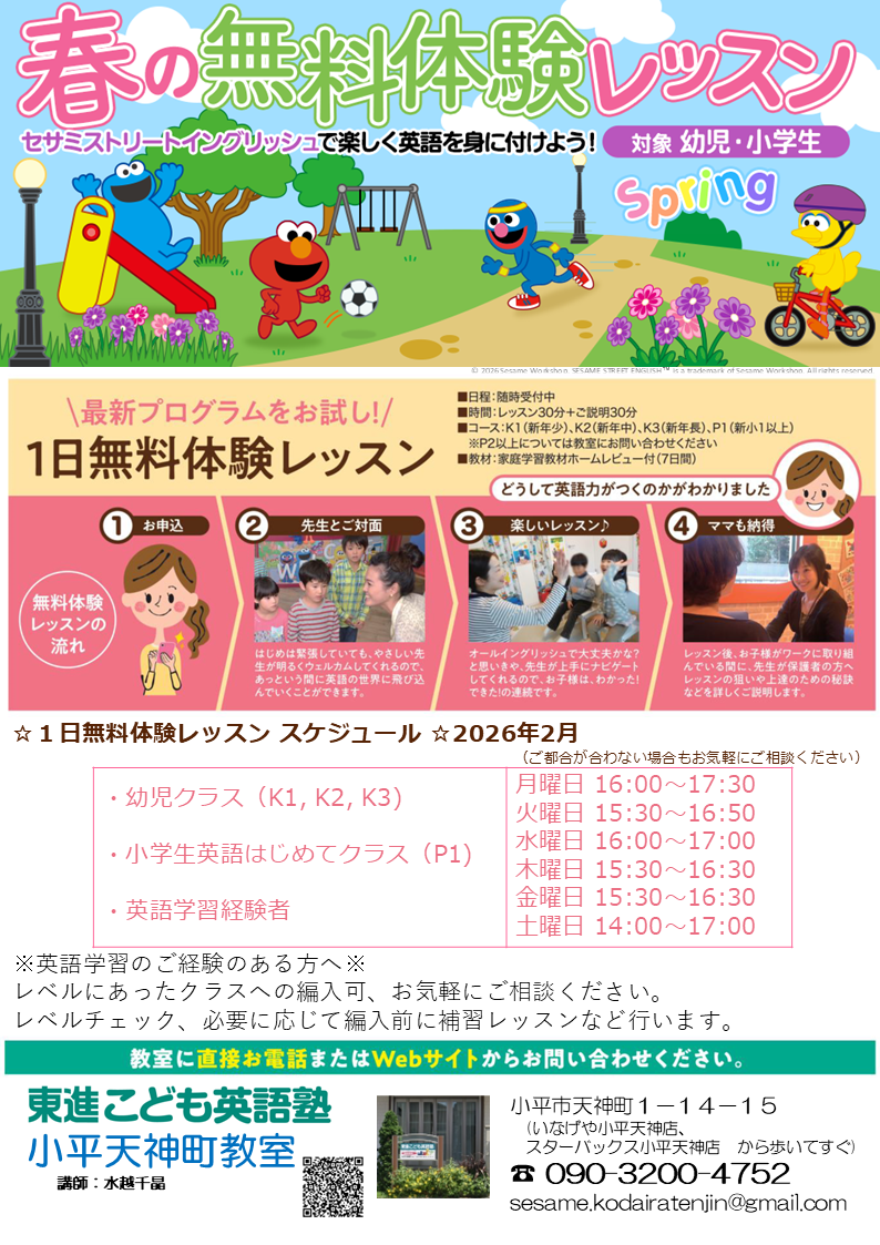英語が初めてのお子さん大歓迎です。お気軽にお問合せください♪