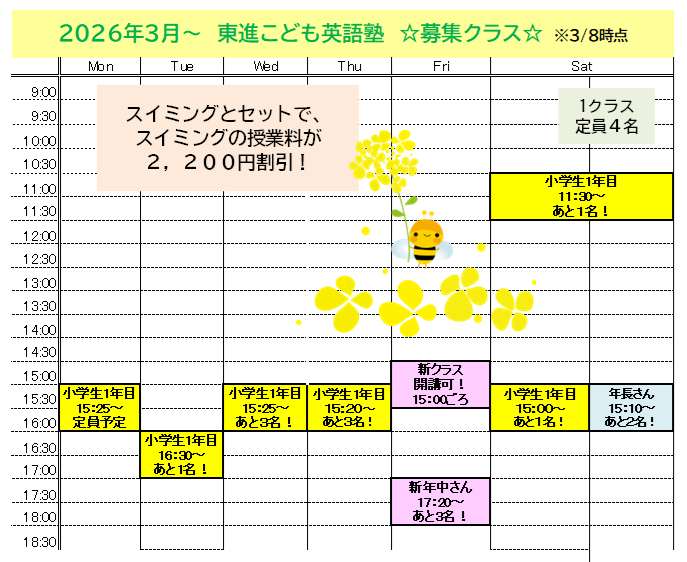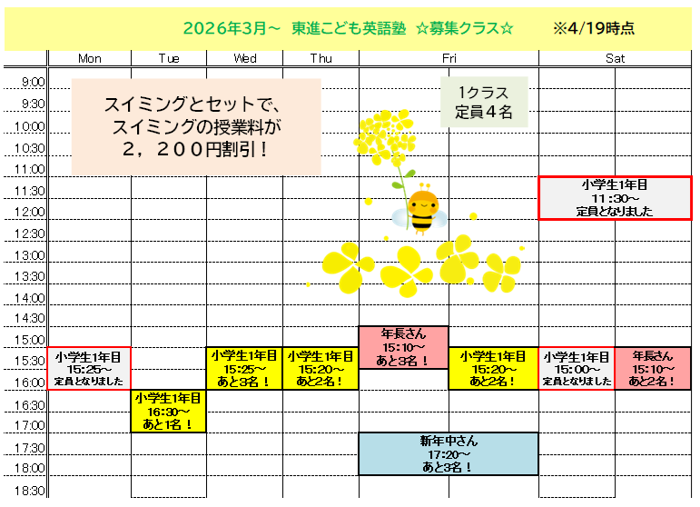 ※スイミングとの併用で、スイミングの授業料が2,200円割引