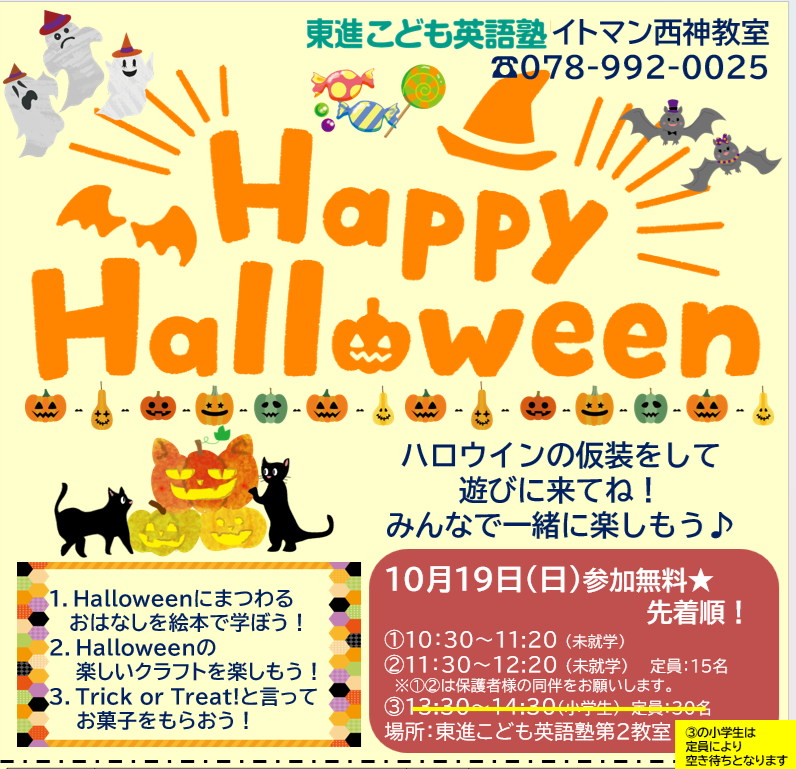 ※定員となっており、空き待ちの受付となります。申し訳ございません。英語でHalloweenをたのしもう!