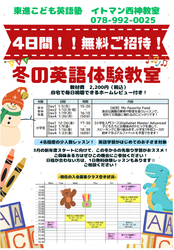 冬の4日間体験!!お申込み受付中です!!