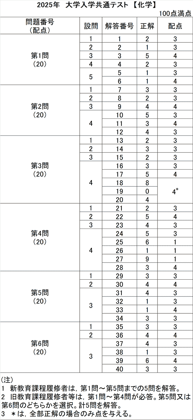 共通テスト 1日目解答