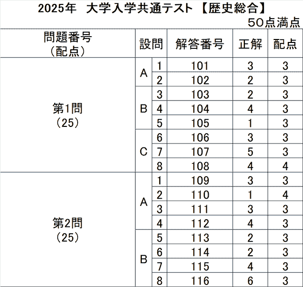 共通テスト 1日目解答