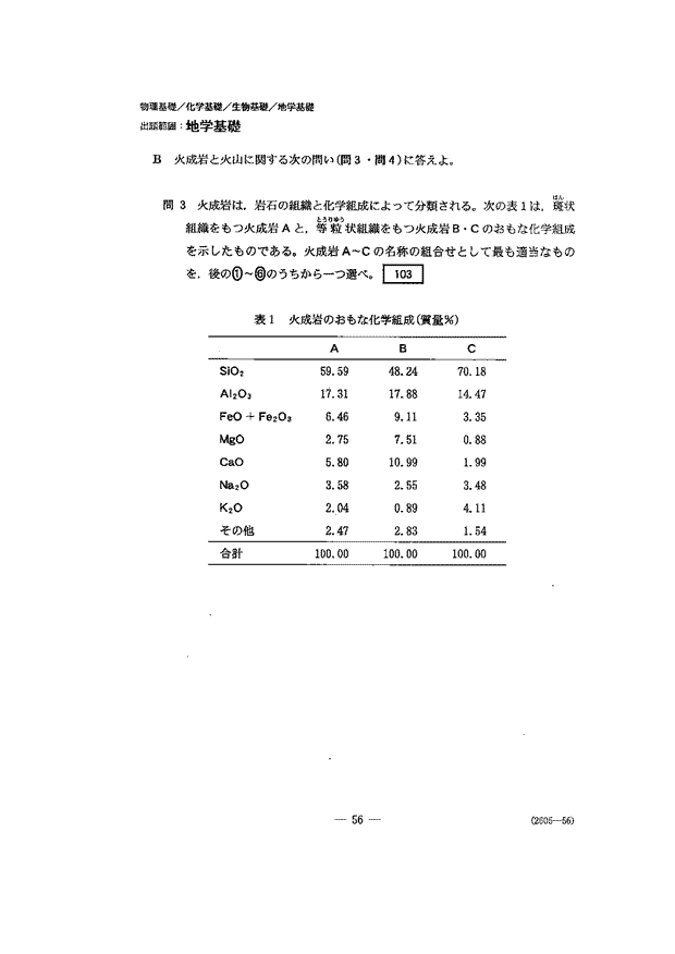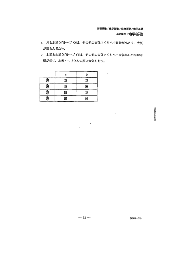 地学基礎 PDFで見る 問題 問題 | 解答 | 解説 | 全体概観 | 設問別分析 | アドバイス( 新高3生 | 新高2生 ) |  トップページへ 表紙 |  大問1 |  大問2 |  大問3 |  大問4 |  表紙 |  大問1 |  大問2 |  大問3 |  大問4 |  PDFで見る 問題 | 解答 | 解説 | 全体概観 | 設問別分析 | アドバイス( 新高3生 | 新高2生 ) |  トップページへ