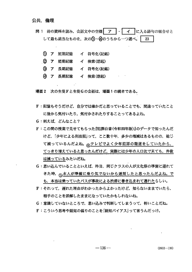 共通テスト 1日目解答
