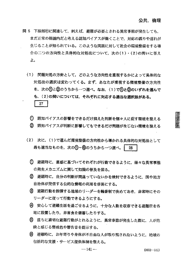 共通テスト 2日目解答
