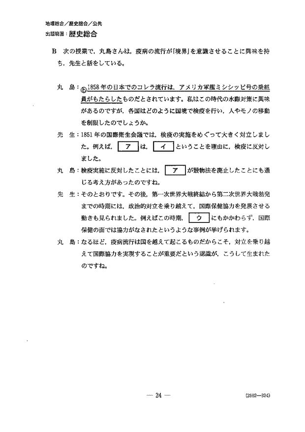歴史総合 PDFで見る 問題 問題 | 解答 | 解説 | 全体概観 | 設問別分析 | アドバイス( 新高3生 | 新高2生 ) |  トップページへ 表紙 |  大問1 |  大問2 |  表紙 |  大問1 |  大問2 |  PDFで見る 問題 | 解答 | 解説 | 全体概観 | 設問別分析 | アドバイス( 新高3生 | 新高2生 ) |  トップページへ