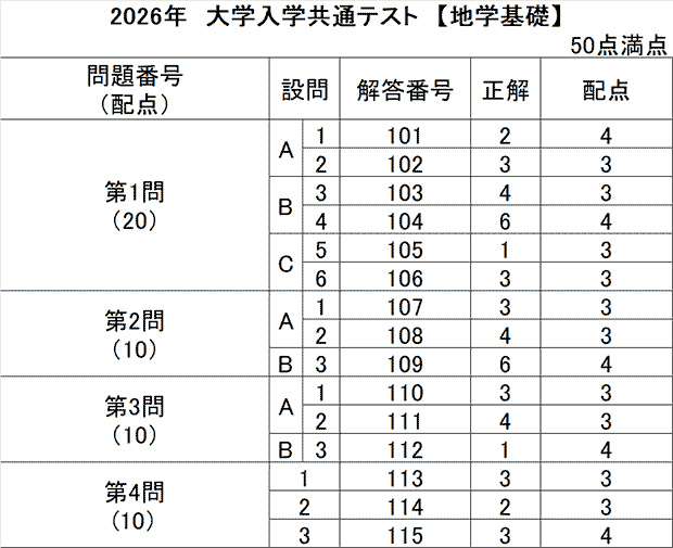 共通テスト 2日目解答