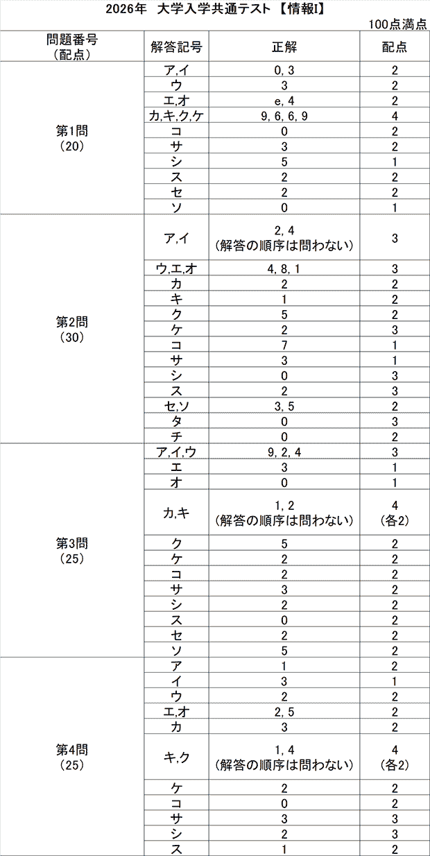 • 共通テスト 1日目解答