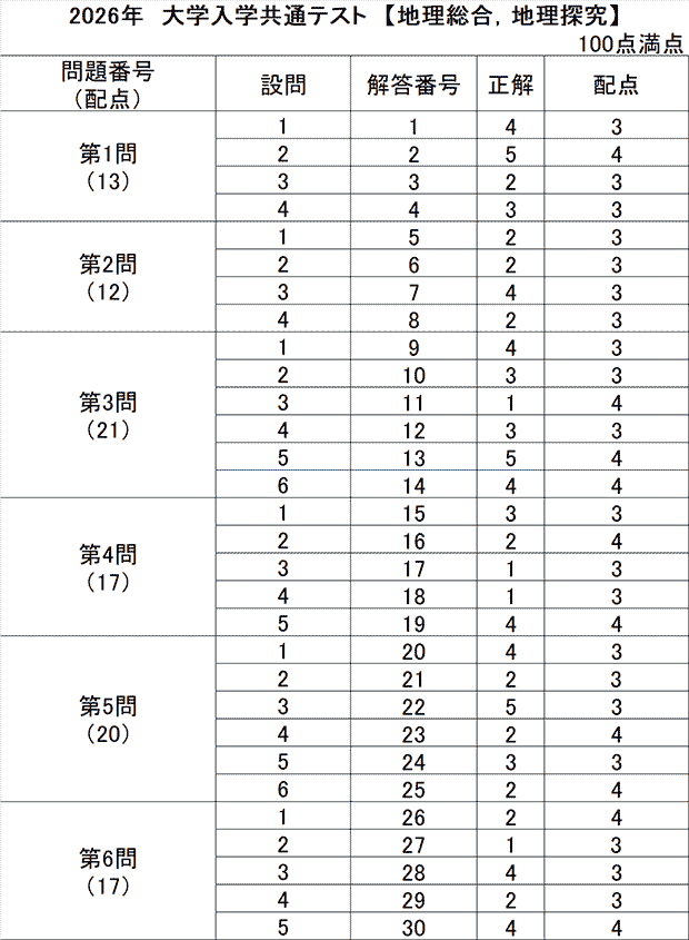 • 共通テスト 1日目解答