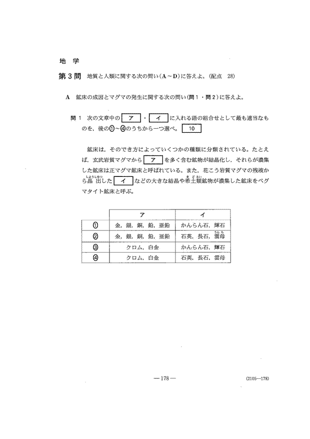 共通テスト 2日目解答