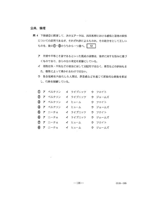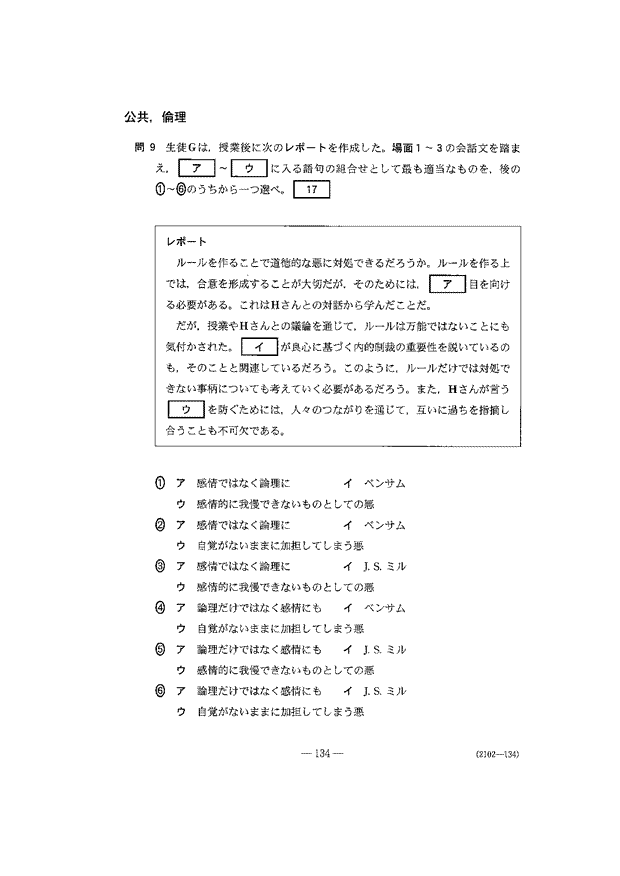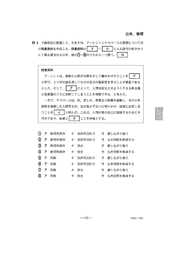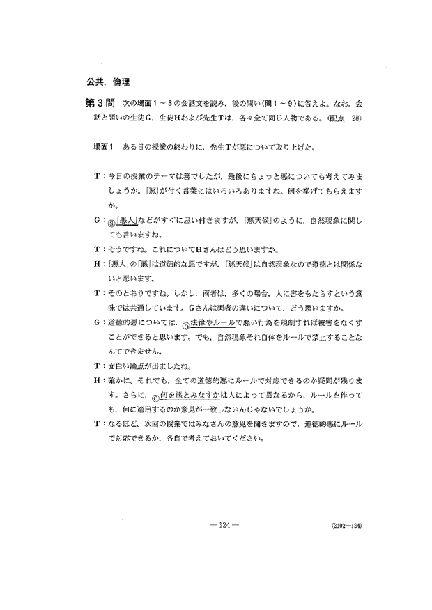 共通テスト 2日目解答