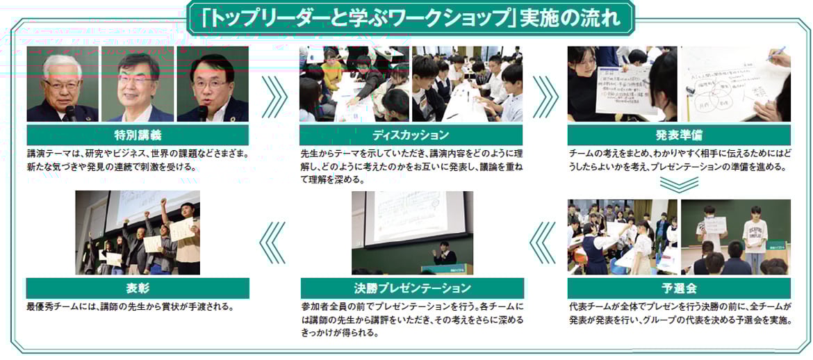 東進は「独立自尊の社会・世界に貢献する人財を育成する」という教育理念の実現に向けて、未来のリーダーを輩出するために、志を高め、人間力を育むイベントを多数実施しています。その中でも特に多くの生徒に刺激を与えているのがトップリーダーと学ぶワークショップです。