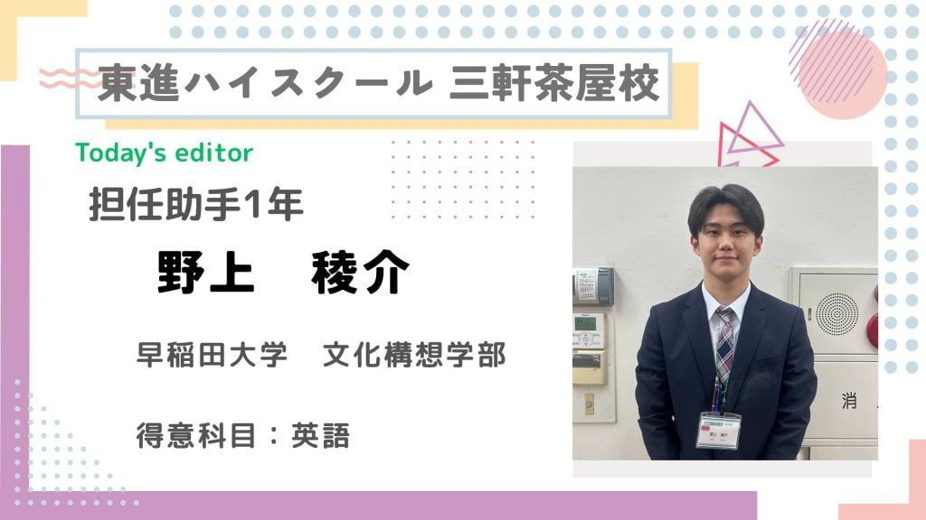 The post 【模試のルーティーンについて】担任助手1年野上(早稲田大学) first appeared on 東進ハイスクール 三軒茶屋校 大学受験の予備校・塾|東京都.