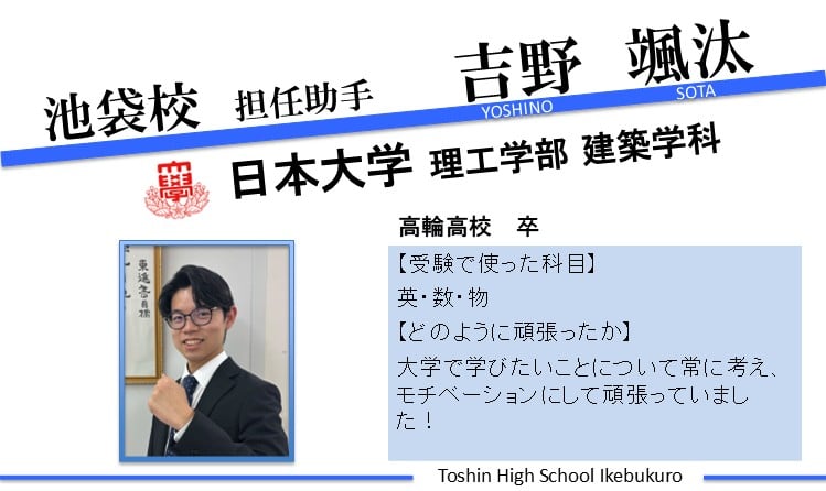 The post 受験生へのメッセージ 吉野ver. first appeared on 東進ハイスクール 池袋校 大学受験の予備校・塾|東京都.