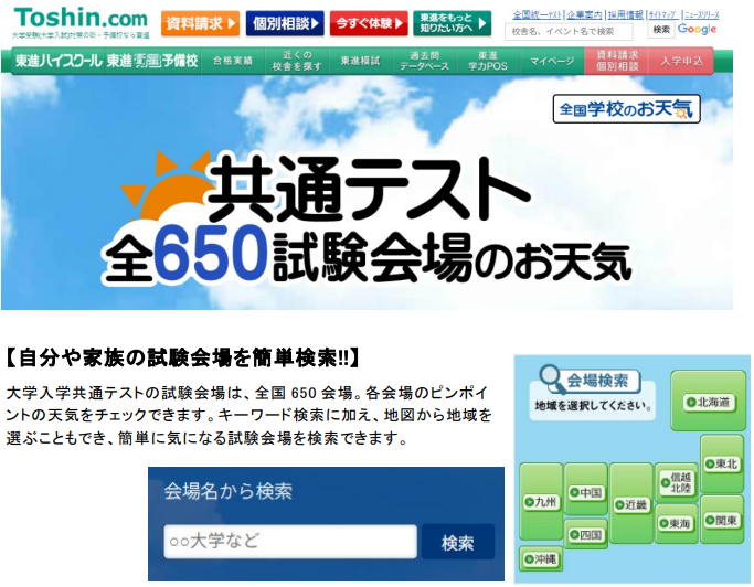 共通テスト 全 650 試験会場のお天気 スマホ・PC からチェック!!