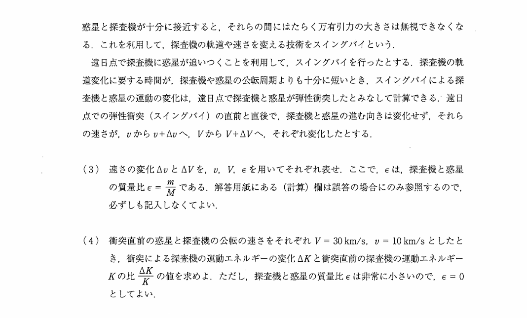 物理 第1問では、人工衛星の「スインクバイ」に関する問題が出題!