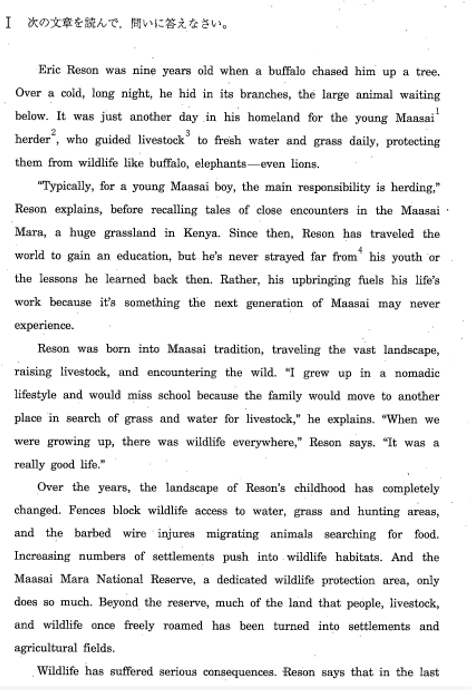 英語 第Ⅰ問の長文読解でマサイ族とマサイ族が直面する社会問題に関する内容が出題!