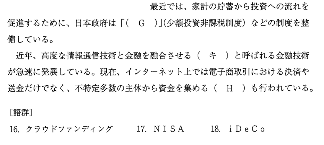 [II]の空欄補充において、2024年からの新制度開始で注目を集める「NISA(少額投資非課税制度)」や、ICTと金融を融合させた「フィンテック」といった、現代金融の最先端テーマが出題された。単なる過去の制度史に留まらず、受験生自身の将来の資産形成にも関わる、極めて実用的かつフレッシュな時事トピックを正面から扱う内容となっている。