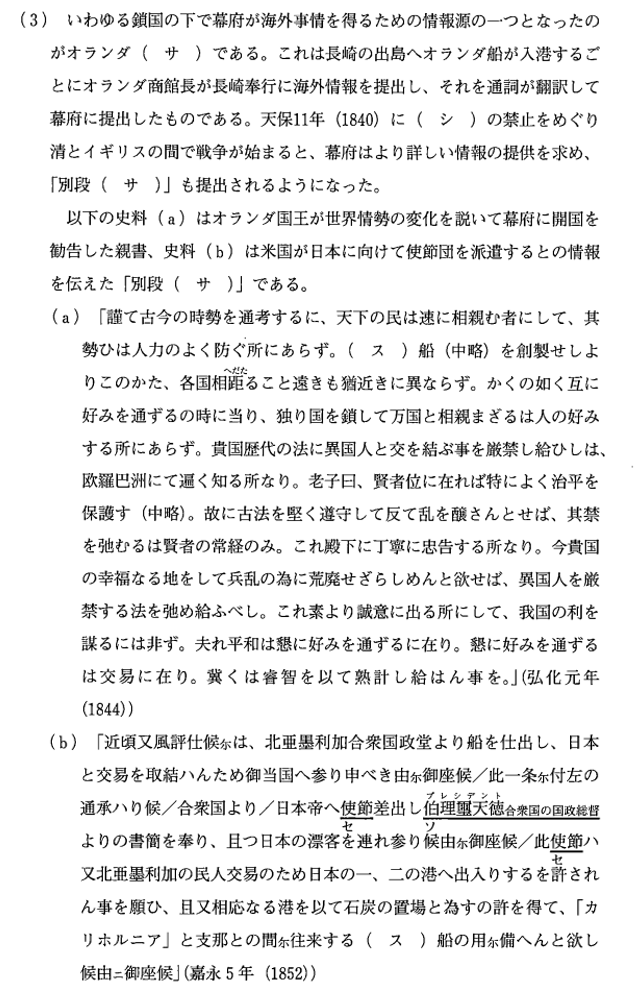 同志社大学全学部日程第2問では江戸時代を中心とした外交史が出題された。同志社大学全学部日程では外交史を正面から問う出題は過去にあまり見られなかったが、昨年に引き続いての出題となった。現行課程で重要視される「世界の中の日本」を意識した出題と考えられる。