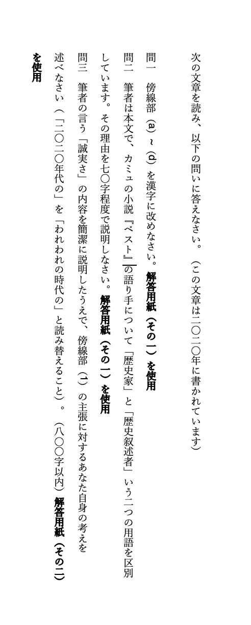総合問題 カミュの「ペスト」の内容を起点に現代の誠実さについての問題が出題!