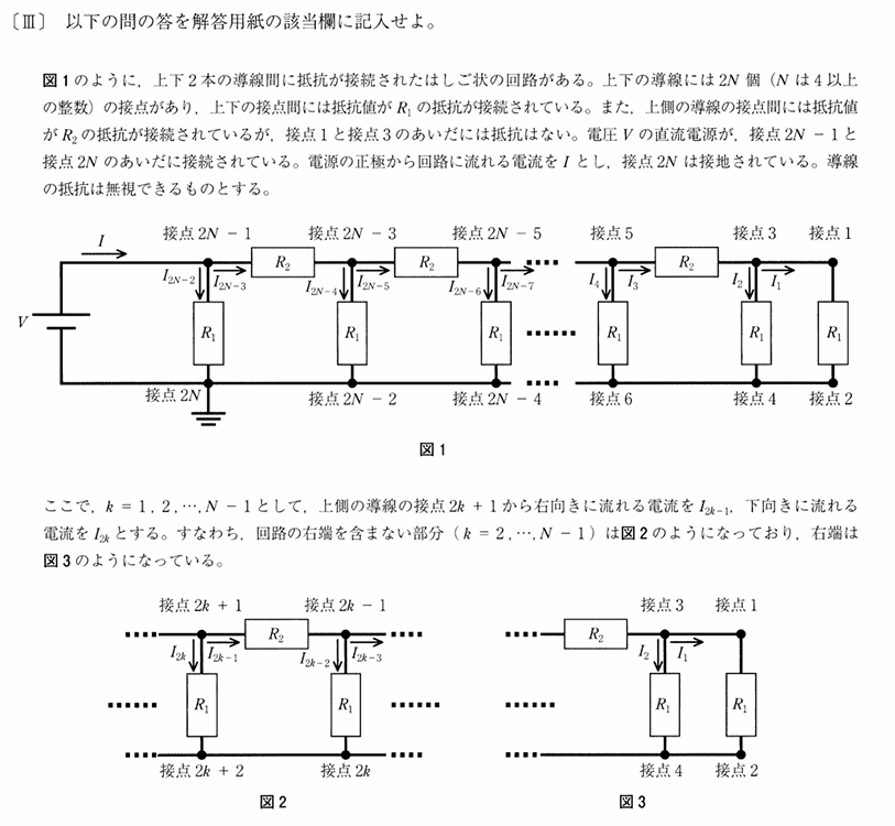 理工系学部物理 複数の抵抗が接続されたはしご状回路と交流の問題が出題!