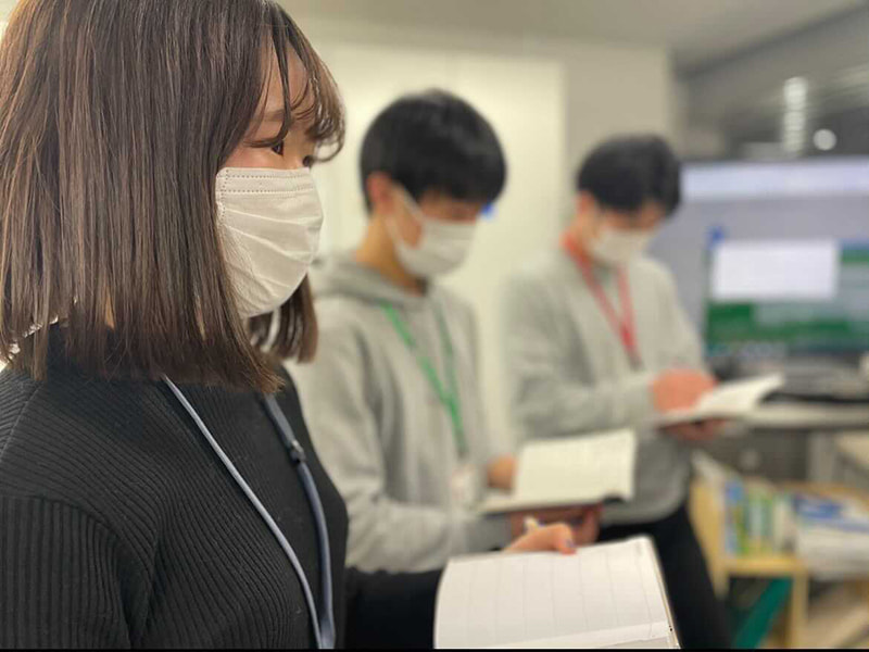 5限授業を受け終わったら、そのまますぐに出勤します。出勤後はその日にやることを書き出して確認し、社員さんのもとへ挨拶に行きます。
